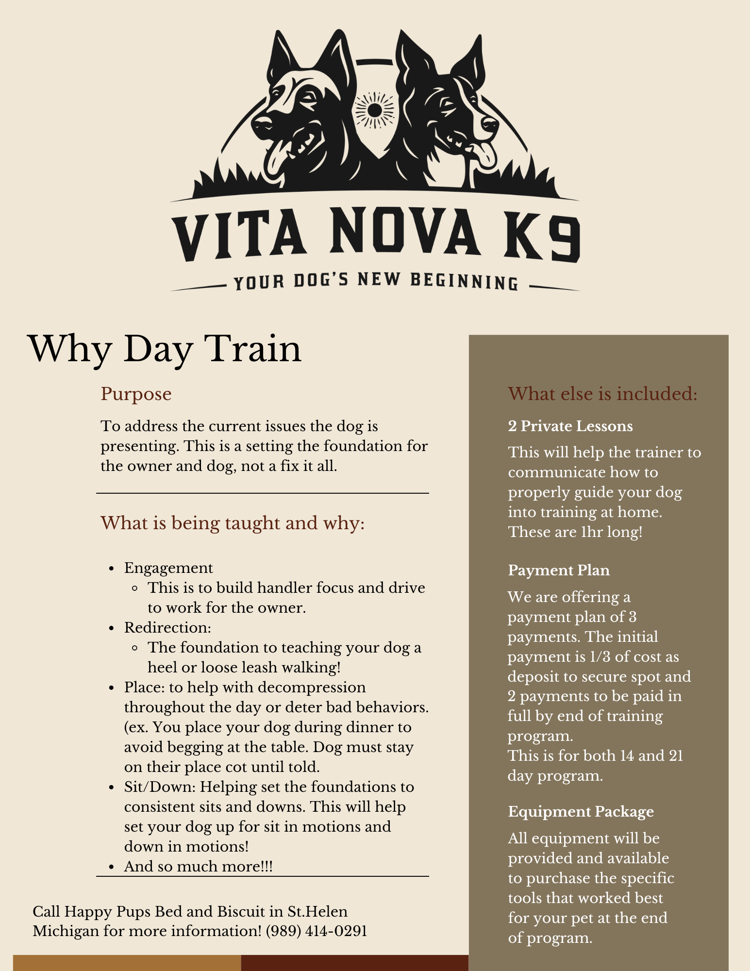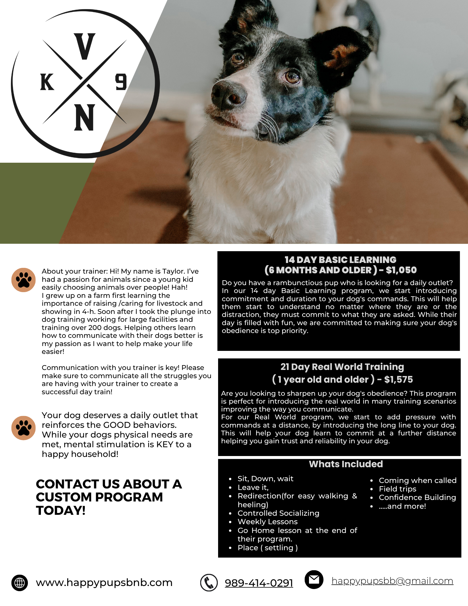 989-414-0291 happypupsbb@gmail.com FYI: If you pay by credit card the statement will have the name of our company "Life Work Balance Consulting LLP" DBA: Happy Pups Bed and Biscuit